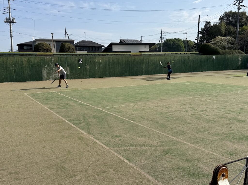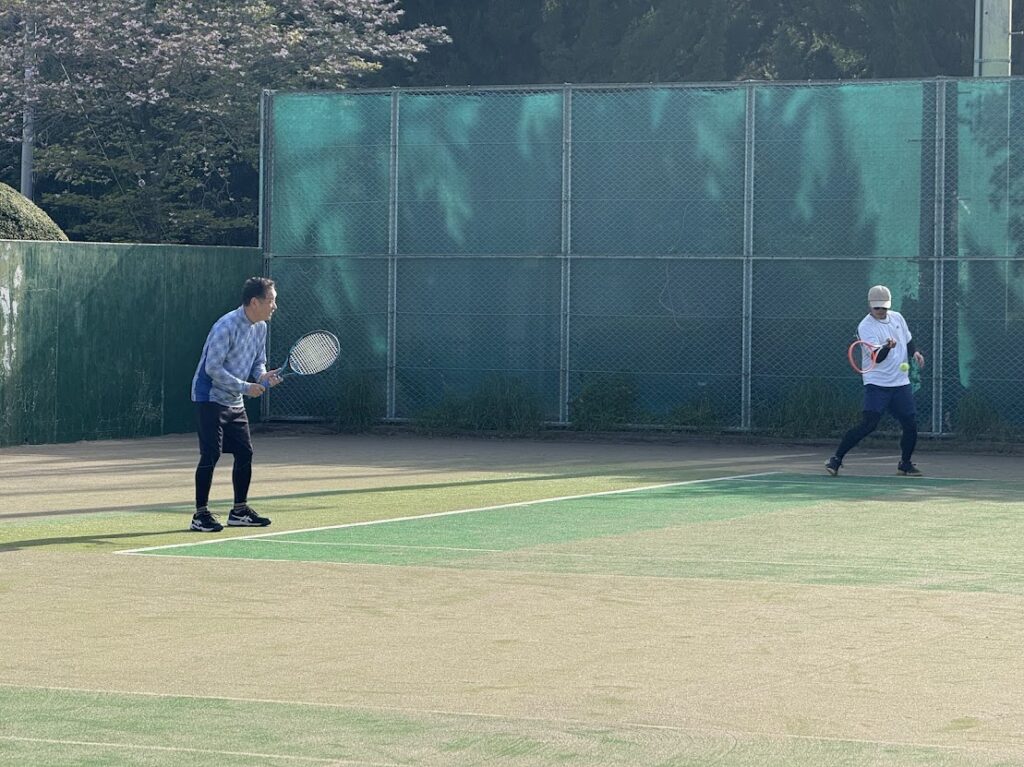 日曜日は試合に参加するメンバーが多く、普段より集まりは少なめでしたが、その友人を交えて週末テニスを楽しむことができました。